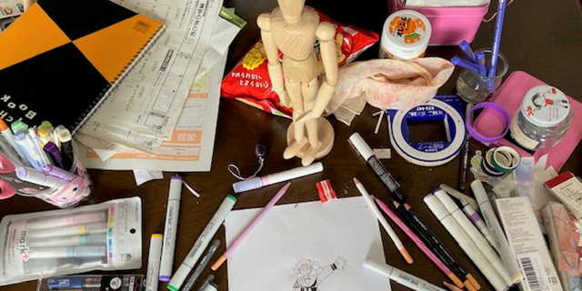 筆記道具が散乱するのも 吾が幼少期と同じ。