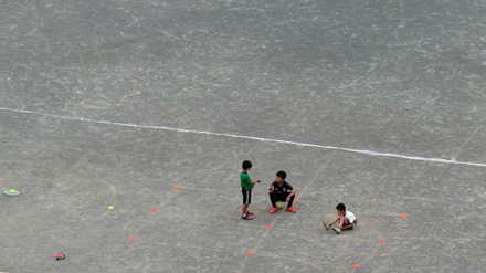 16時になると隣接地の小学校校庭に学童保育