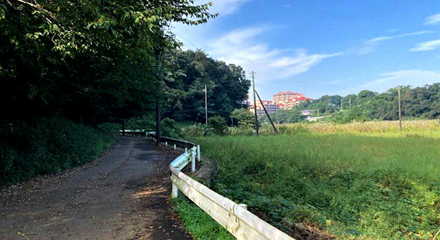 沿いにポッンと建つ団地に近づきつつ、