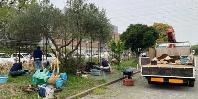 倒し、掘り返す。環境整備の一環として行なうボランティア活動通年