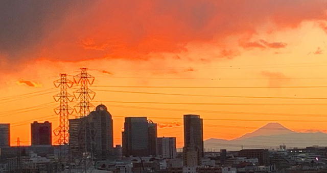 ベランダに初秋から早春にかけて姿を現す富士の山をみるた