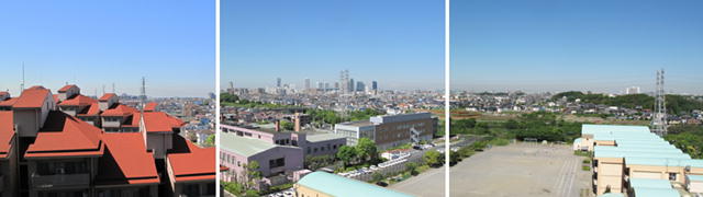 城南に設けた新事業所の上層階にあるトイレの窓から大きな