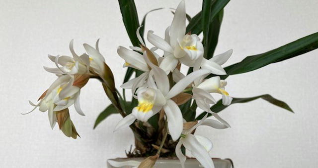 を咲かせたセロジネが鎮座する。この花、前年初夏に