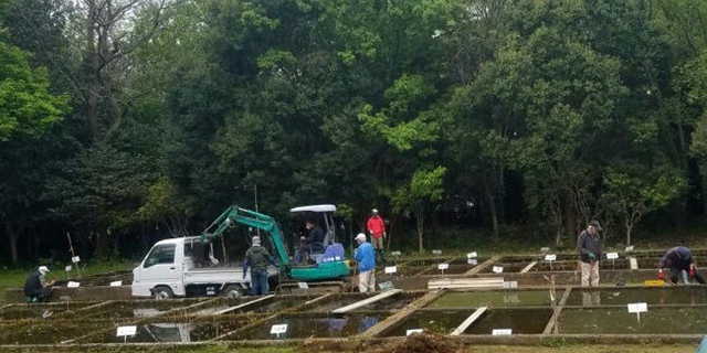 ハス圃場維持活動のボランティアに参加して5年、春まだ寒き