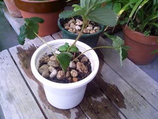 植え付けは前鉢から抜き鉢底石を取りそのまま新しい用土(110ミリ)の
