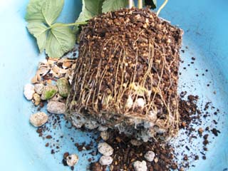 右上写真は、親株の根の状態です。土力不足が感じられ今回の試み(土力