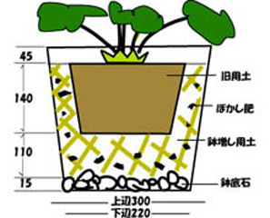 畑栽培ほどには行かないが底部に新しい用土を充分補充することが出来、