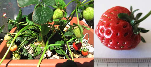 く熟す過程を楽しみ、イチゴ狩りと言っては美味しそうに食べてくれました、