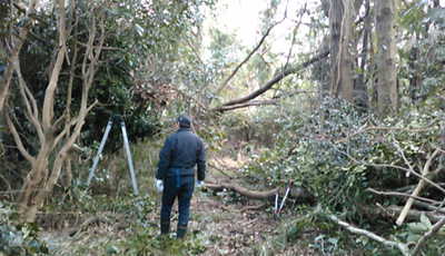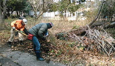 有志3人で倒木片付けを行なう、