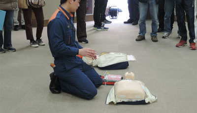 緊急通報の予行演習に一次救命