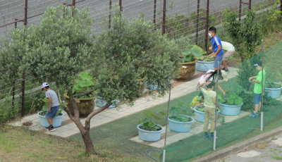 早朝 校庭の一隅で