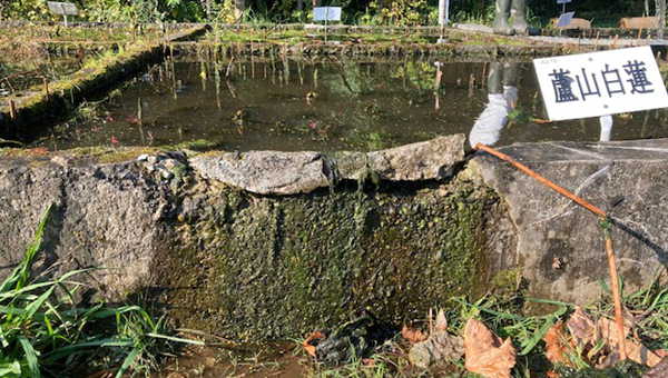 蓮プールの藻を 熊手でかきとり カキトリ 除去をして