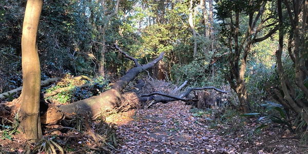 | ( 老境活動拠点里山の 老木倒壊 1月7日の状況 ) |