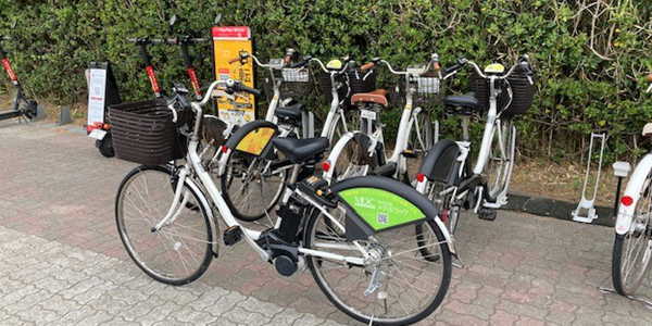 今日シエア電動自転車で海までスイスイ 25分で行く
