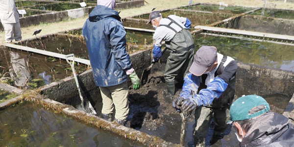 東日本大震災から12年目の今日ハス圃場の植替えを行なう