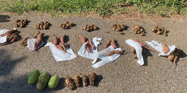 本日の対価 テスト掘りした細きサツマイモ2本