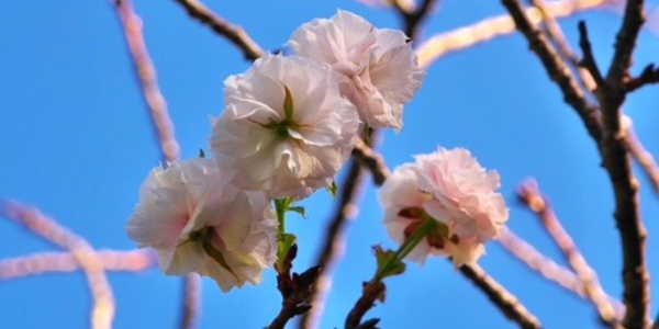 桜の狂い咲きを伝えるニュースながれる