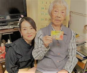 故郷の妹から孫に寄り添われた母の写真が