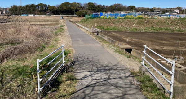 遊歩道から農道をぬけ雑木林のむこう