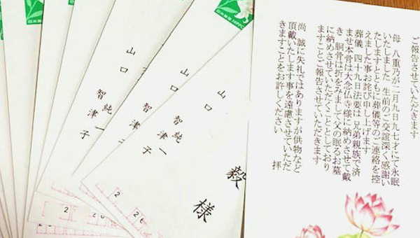 四十九日あけ 義理を欠いた方々に