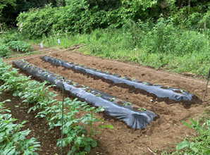 イチゴのマルチ掛けに ジャガイモ3種
