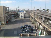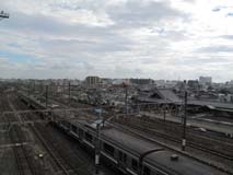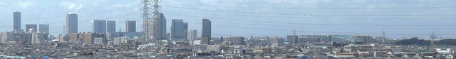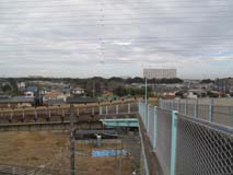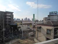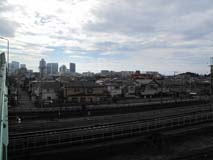駅舎の二階から駅前通り商店街越しに新都心のビルが遠望できます、新旧