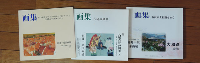 | 我が家の書庫を飾る画集 (左より 2001年・ 2004年・ 2007年 作品展に併せ出版された画集) |